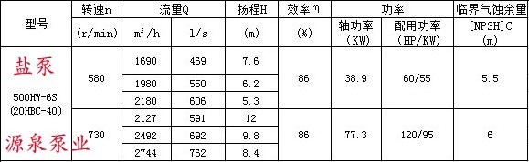 500HW混流泵的性能參數 |